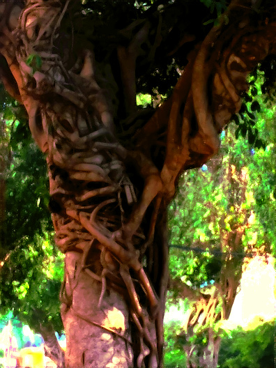 The lush green overtures of trees and the rough verdant foliage created a feast of visual delights. Beneath each frond and up high in the canopy above, came the cries and colourful laments of the bestial inhabitants. Woe is he who enters this place, for it shall collapse upon you. This place devours.